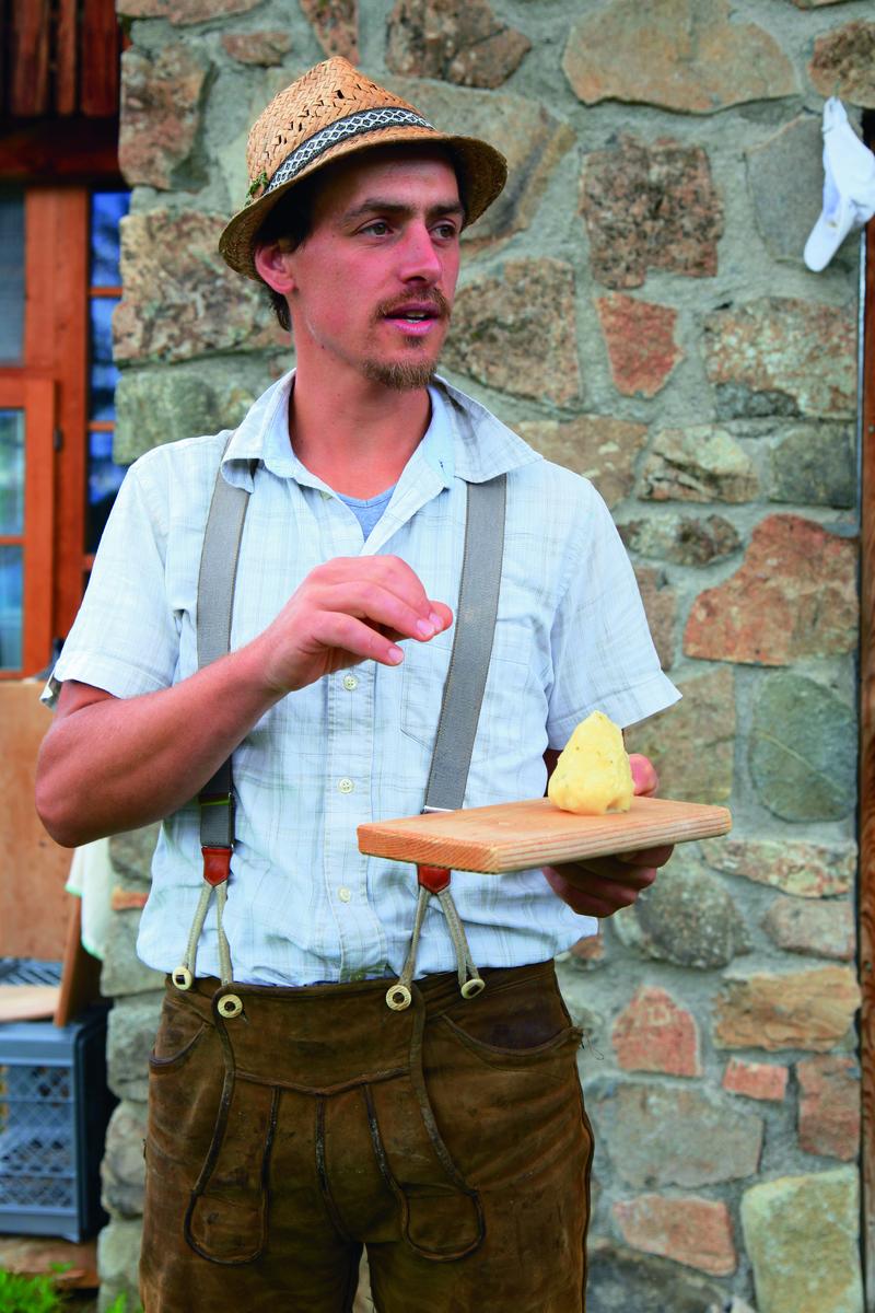 In de hut ontmoeten we Johannes, de oudste zoon van de familie Hintegger die deze hut openhoudt. Het bergleven zit duidelijk in zijn DNA. Zijn familie doet al honderden jaren aan landbouw op de Lüsner bergweide. Johannes leidt ons in lederhose rond in zijn kaasmakerij. Van de melk van zijn koeien, die vrij rondzwerven over de bergweide, maakt hij handmatig de heerlijkste alpenkazen.
