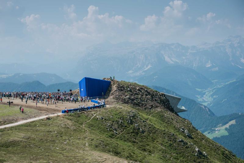 Het museum ligt op de Kronplatz in Zuid-Tirol. Het grootste deel zit verborgen in de bergtop, maar wanneer je er doorheen wandelt, komt je uiteindelijk terecht op een terras. Vandaar kan je de hele omgeving overschouwen.