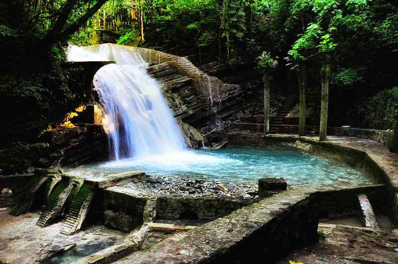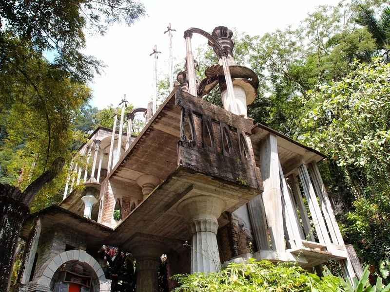 De plek is nog het meest te vergelijken met een werk van Escher, met trappen die in cirkels lopen, zuilen die niets ondersteunen en bogen die nergens heen gaan. Daartussen liggen riviertjes, watervallen en vijvers. Her en der zijn surrealistische standbeelden te vinden.