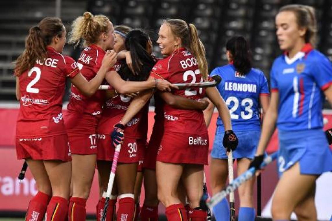 De Belgische hockeyvrouwen hebben maandag op het EK in eigen land hun tweede groepswedstrijd gewonnen. Op het Wilrijkse Plein in Antwerpen haalden de Red Panthers (FIH 9) het met 4-1 van Rusland (FIH 23). Louise Versavel opende na 7 minuten de score. Anne-Sophie Weyns en Stéphanie Vanden Borre, na een strafcorner, maakten er nog voor het einde van het eerste kwart 3-0 van. Bogdana Sadovaia zette Rusland zes minuten voor het einde van het tweede kwart op het scorebord. Zo was de ruststand 3-1 in het voordeel van de Panthers.