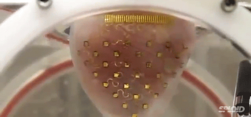 Maar dit apparaat is niet alleen een op maat gemaakte pacemaker. Volgens John Rorgers, co-leider van het team die dit apparaat heeft ontwikkeld, is het als een kunstmatige hartzakje, het natuurlijke membraan dat het hart omvat. Igor Efimov, biomedisch ingenieur aan Washington's University, zegt dat het een enorme vooruitgang. De circuits die je ziet zijn een combinatie van sensoren die voortdurend het gedrag bijhouden van het weefsel en de elektroden die de bewegingen van de hartspier regelen. Dat betekent dat het membraan perfect kan ingrijpen als een persoon een hartaanval krijgt en zo kan het levens redden.