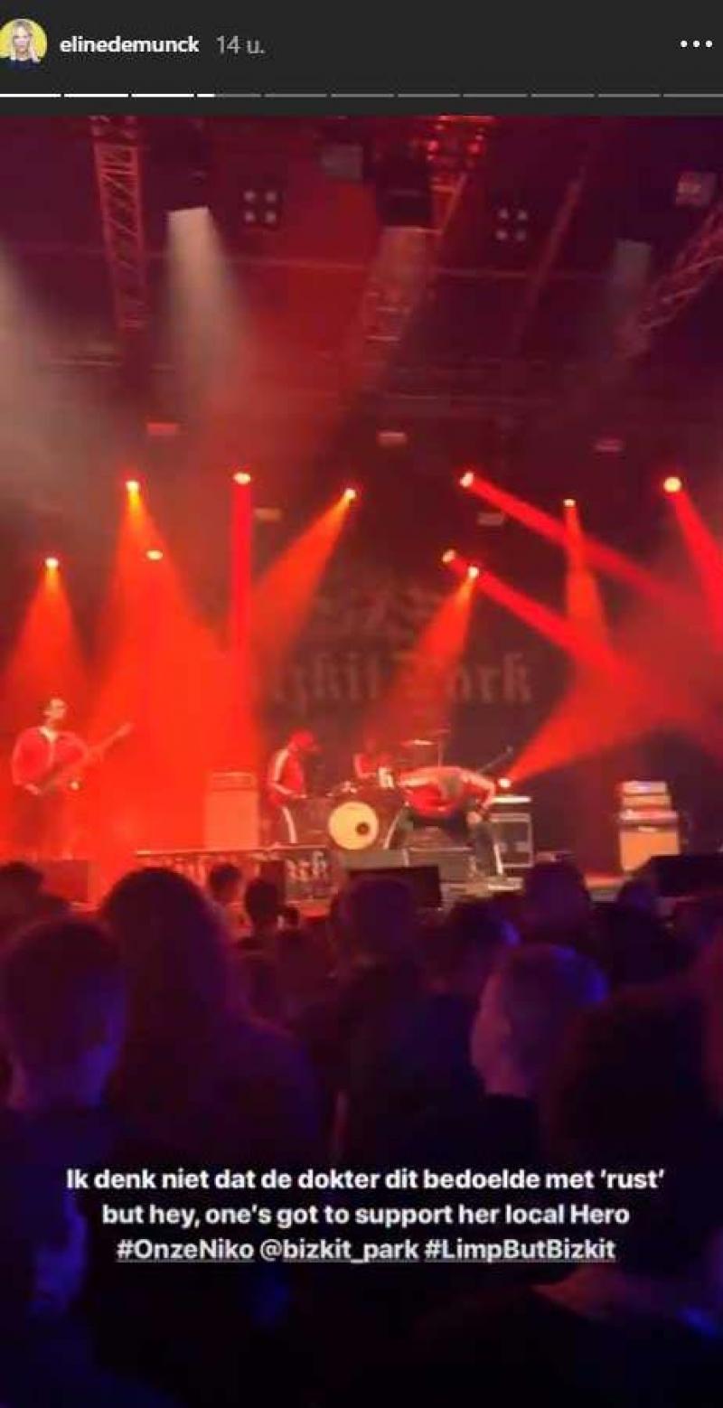 Daarna kon ze er weer helemaal tegen, want dezelfde avond hing ze het feestbeest uit op de Fonnefeesten in Lokeren, waar NU-metal tribute band Bizkit Park het festival op zijn kop zette. Ik denk niet dat de dokter dit bedoelde met rust' but hey, one's got to support her local Hero, schreef ze op Instagram.