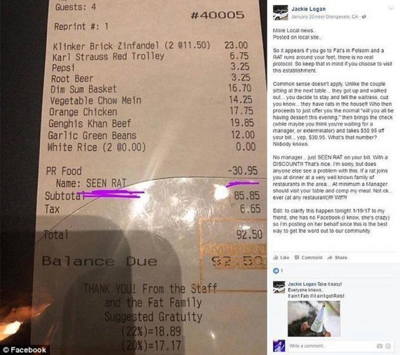 Een vriend van een van de restaurantbezoekers plaatste het bewijs op Facebook, waarna het verhaal opgepikt werd door media. "De manager heeft letterlijk geschreven wat de klant gezien of gerapporteerd heeft. Dat is niet de normale gang van zaken", verklaart uitbater Kevin Fat bij News 10. De man is nu op zoek naar gasten om de zaak uit te klaren.