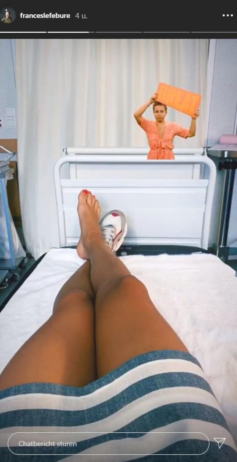 De 31-jarige Make Belgium Great Again'-presentatrice deelde het nieuws op haar Instagram Stories. Gewoon ligamenten gescheurd. Dikke merci aan de spoeddienst van AZ Sint-Lucas Gent voor de goede zorgen. En nu: pootjes omhoog, schreef ze bij enkele foto's van onder meer het ziekenhuis. Ook haar kersverse vriend Boris Van Severen is daarop te zien. Die mag zich nu een tijdje extra hard ontfermen over haar.