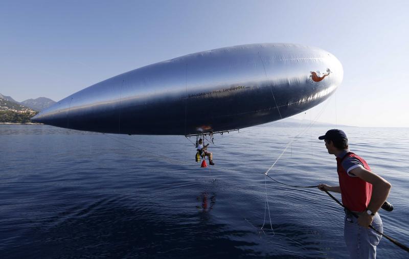 Wat hebben de gebroeders Wright, Leonardo Da Vinci en Ferdinand von Zeppelin met elkaar gemeen? Ze hebben allemaal verschillende vliegmachines verzonnen. Aan dat lijstje kunnen we nu Stephane Roussoun toevoegen, de uitvinder van de Aerosail. De Aerosail is een motorloze zeppelin die boven water vliegt, aangesloten op een draagvleugelboot. De zeppelin wordt opgetild door gas en gestuurd door de wind. Stephane wil met zijn uitvinding een tocht afleggen van 200 kilometer, van Nice naar Corsica.
