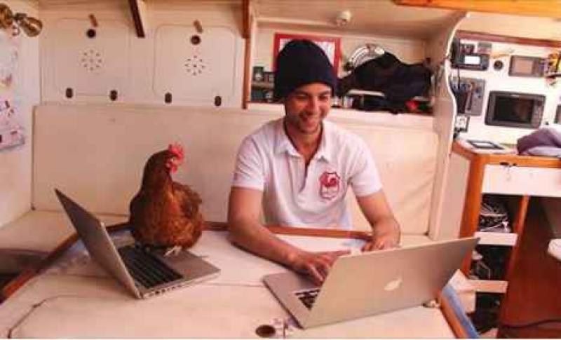 Je kan de zeiler en zijn kip volgen op zijn blog of via zijn Facebook-pagina.