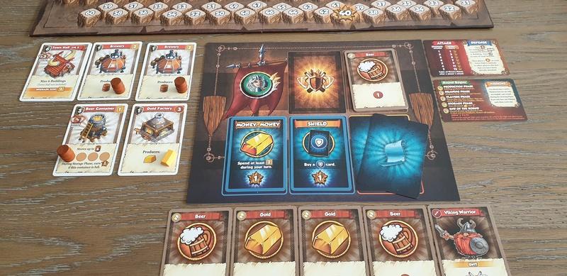 Zoals bij meeste deckbuilding games, start iedere speler met een aantal basiskaarten. Die helpen je aan drie soorten grondstoffen: goud, bier en aanvalspunten. Met bier en goud kan je jouw dorp of je deck uitbouwen.