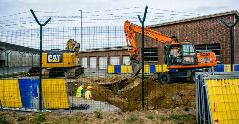Reizigers die uit taxi's en busjes stappen, om zwaar gepakt en gezakt de laatste kilometer te voet af te leggen. Dat was het beeld vanochtend nabij de luchthaven van Zaventem. Boosdoener was een graafmachine, die rond 7u15 een gaslek had veroorzaakt ter hoogte van de rotonde aan Brussels Airport.