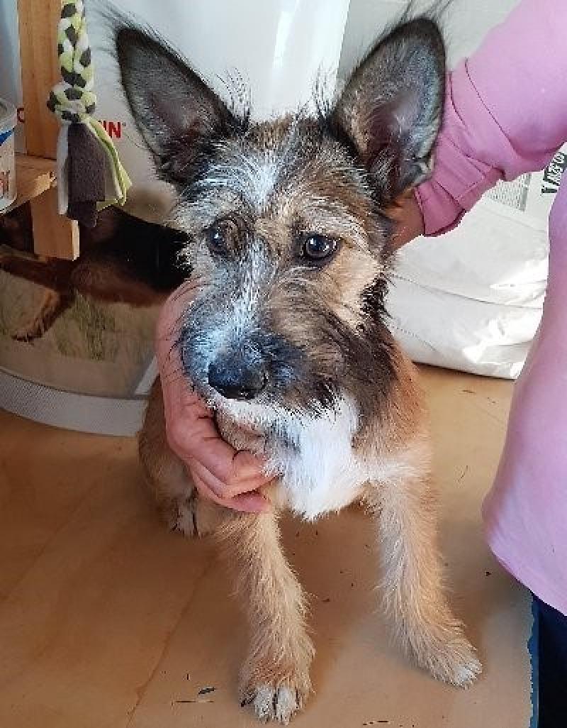 Hoi, ik ben Antigoon! Ik heb een vrij wit snoetje, waardoor ik ouder lijk, maar ik ben nog een vrij jong hondje. Ik verblijf al bij een opvanggezin in België en heb al helemaal mijn draai gevonden! Mijn staartje stopt niet met kwispelen, knuffels vind ik top en ik kom er steeds om vragen. Als er gewandeld wordt, sta ik heel enthousiast als eerste aan de deur, en ik loop heel netjes aan de leiband. In de auto is er ook geen enkel probleem. Ik ben een zeer sociaal ventje met een gouden hartje en zoek een baasje van wie ik veel liefde krijg. Je kan met mij kennismaken in mijn opvanggezin in Halle.