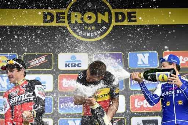 Aan de aankomst in Oudenaarde had Gilbert een halve minuut voorsprong op Greg Van Avermaet (BMC). De olympische kampioen klopte in de spurt om plaats twee de Nederlanders Niki Terpstra (Quick-Step Floors) en Dylan van Baarle (Cannondale). Gilbert volgt op de erelijst wereldkampioen Peter Sagan op.