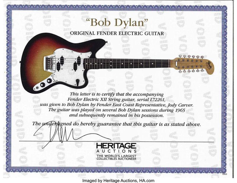 Dylan gebruikte de Fender tijdens de opnames van de plaat 'Blonde on Blonde', die in 1966 uitkwam. Op dat dubbelalbum staan Dylan-klassiekers als 'Just Like a Woman', 'Sad Eyed Lady Of The Lowlands' en 'I Want You'. Het bekende muziekblad Rolling Stone rangschikt 'Blonde on Blonde' bij de honderd beste albums ooit gemaakt.
