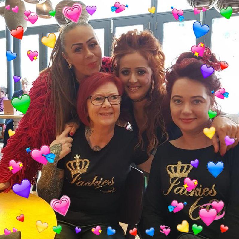 Van links naar rechts: Lisa Chesworth (zus), Jackie Chesworth (mama), Leanne Knight, Natalie Foster (zus):