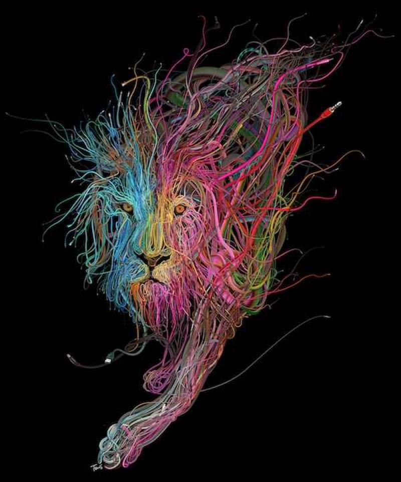 De Griekse ontwerper en kunstenaar Charis Tsevis maakt prachtige portretten met allerlei verschillende soorten elektrische kabels. Het resultaat is een verbluffend kleurrijke weergave van een leeuw, mensen en een meisje met een tablet. Tsevis was geïnspireerd door hoezeer onze samenleving afhankelijk is van het internet en bij uitbreiding elektriciteit. Hij ontwierp eerder al een cover voor het televisiemagazine TV GUIDE waarop dokter Gregory House te zien is. Het protret bestaat enkel uit verschillende pillen.