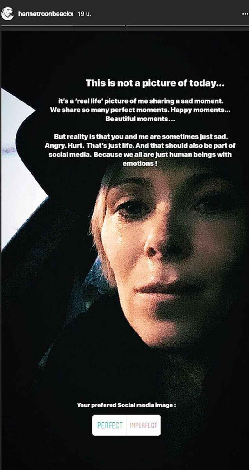 Volgens sociale media lijken we allemaal een volmaakt leven te leiden. Hoewel de situatie in werkelijkheid vaak minder rooskleurig is, tonen we dat niet altijd op Instagram of Facebook. De druk om steeds gelukkig te zijn, is daardoor erg hoog. Hanne Troonbeeckx wil dat fenomeen tegengaan en postte een beeld van een minder fijn moment op haar profiel.