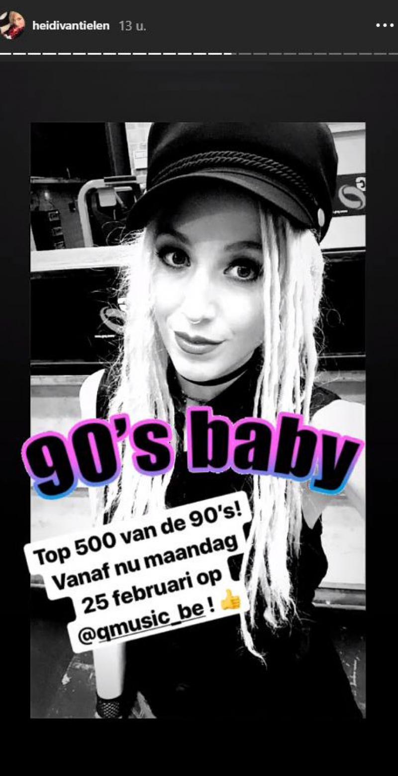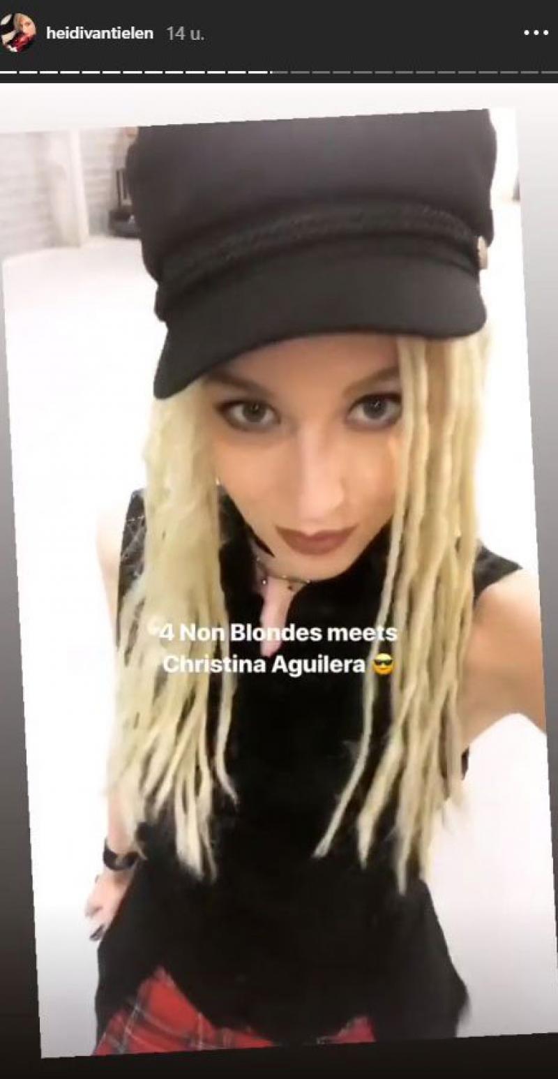 De 33-jarige radiopresentatrice ontpopte zich dinsdagavond tijdelijk tot Christina Aguilera-lookalike naar aanleiding van de top 500 van de 90's. Die zal vanaf maandag 25 februari te horen zijn op Qmusic. Yes, it's me. Ik heb mij wat laten gaan vandaag..., schreef ze bij de opvallende foto.