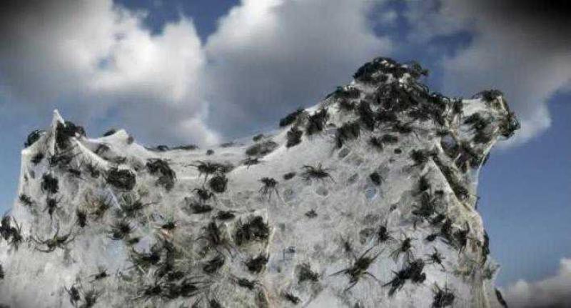 "De hele plaats was bedekt met kleine, zwarte spinnetjes en toen ik omhoog keek naar de zon, zag ik een soort tunnel van webben een paar honderd meter de lucht in," getuigde Ian Watson, een lokale bewoner.