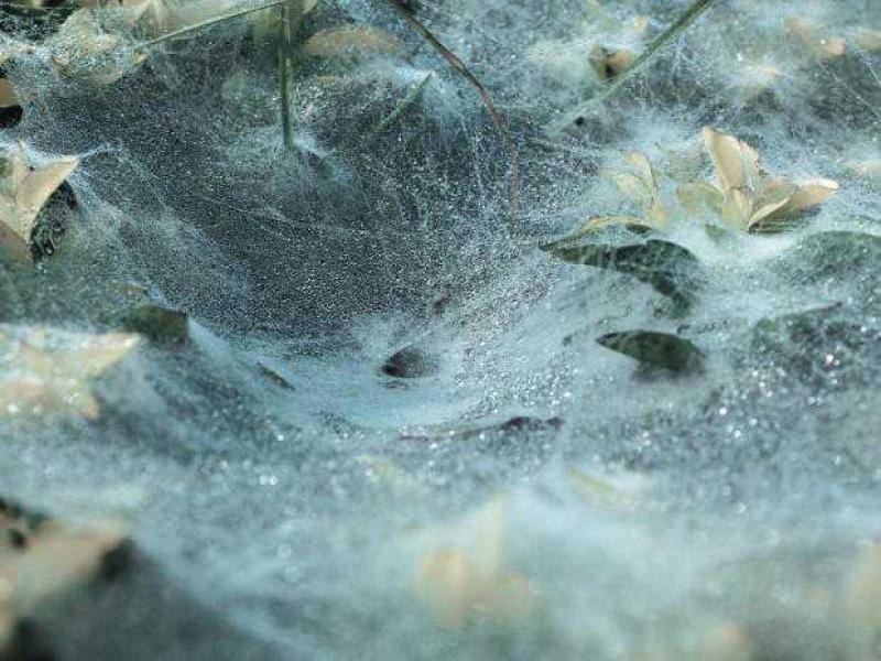 De spinachtigen verspreidden zich na hun landing en zochten een verblijf op de akkers en huizen. Foto's laten zien hoe de omgeving begraven lag onder een dunne laag spinnenwebben die het dagelijkse leven van de bewoners in de stad belemmeren.