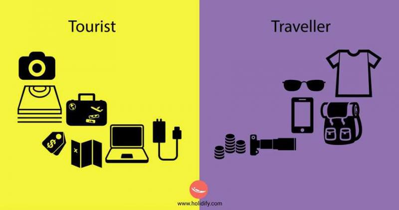 Holidify, een organisatie die reizigers helpt de juiste bestemming te kiezen en plannen op basis van hun persoonlijke voorkeuren, heeft een aantal grappige illustraties gepubliceerd die het verschil duidelijk maken tussen een toerist en een reiziger.
