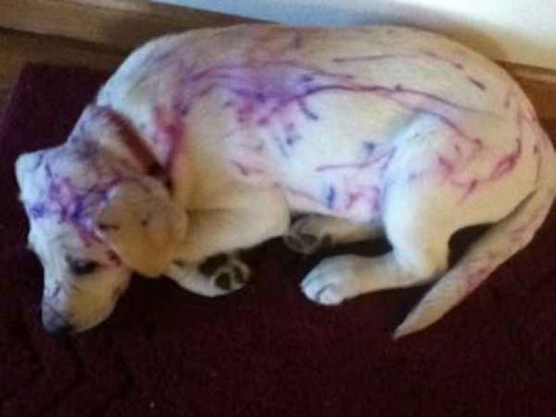 De ouders die hun kleuter kunstenaar lieten spelen met de hond: