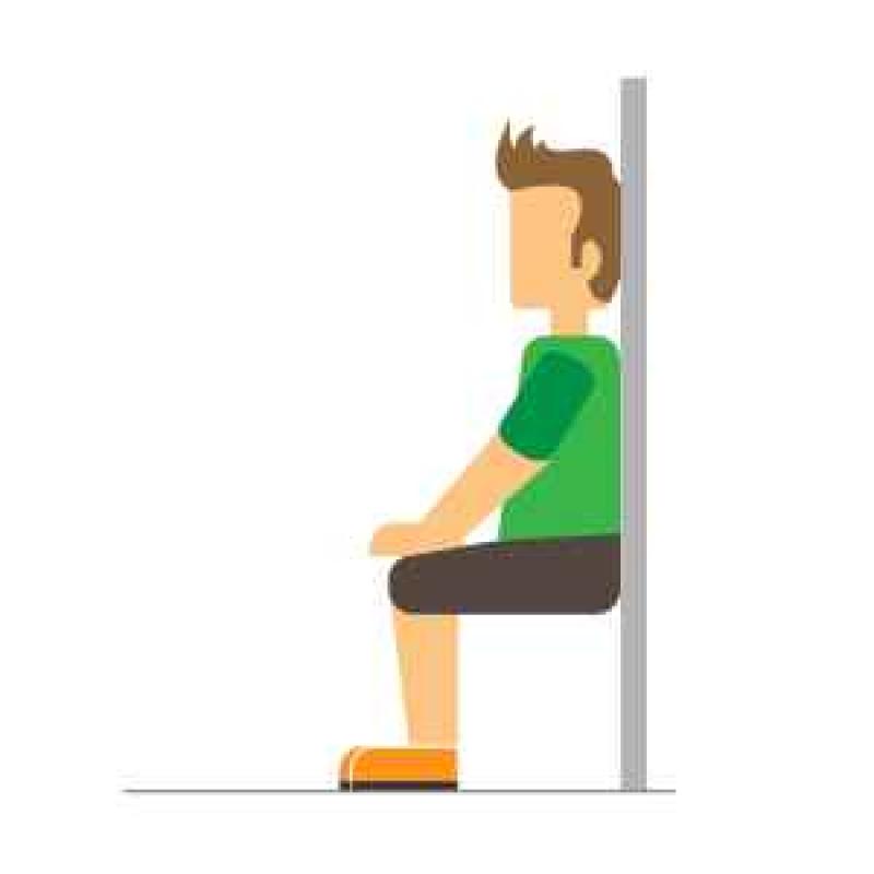 Zoek een muur met een glad oppervlak en ga hier met je rug tegenaan staan. Zak door je knieën en zet je voeten iets breder dan schouderbreedte. Buig je knieën ongeveer 90 graden. Til één been iets van de grond op en steun op je andere been. Houd deze positie zo lang mogelijk vast. Herhaal na 5 minuten rust met andere been.