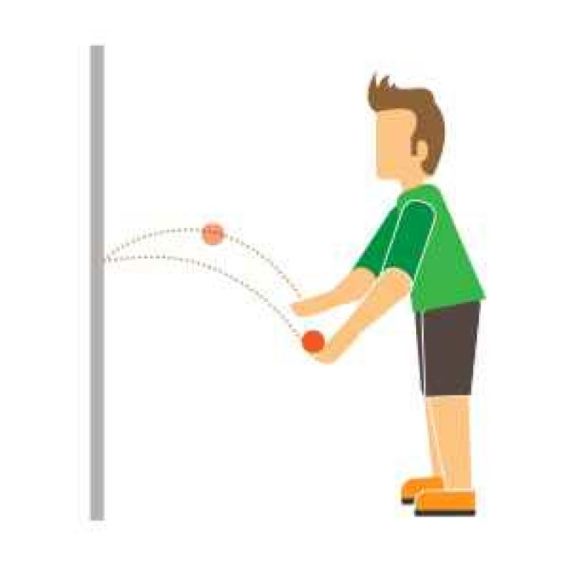 Ga op twee meter van een muur staan en pak de tennisbal in één hand. Gooi de bal onderhands tegen de muur aan en vang hem op in je andere hand. Gooi de bal weer tegen de muur en vang hem op met de hand waarmee je begon. Probeer dit zo vaak mogelijk te herhalen in 30 seconden.