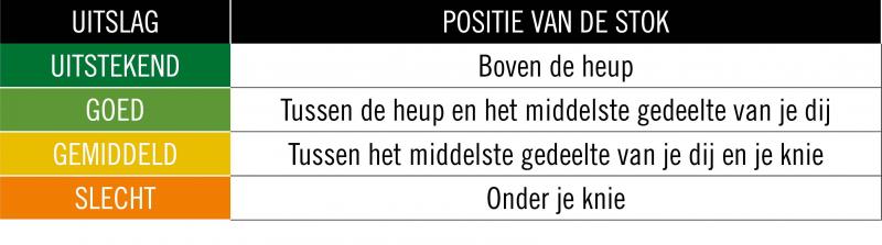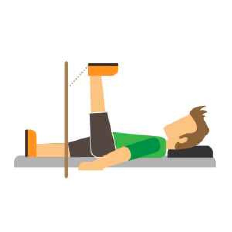 Ga plat op de grond liggen met je benen helemaal gestrekt. Til één been omhoog, wijs je tenen naar je toe en strek je knie. Til hem zo ver mogelijk op en zorg ervoor dat je andere been op de grond blijft liggen. Laat iemand anders nu de stok plaatsen naast je enkel (van het gestrekte been). De positie van de stok ten opzichte van je been dat op de grond ligt zegt iets over de uitslag van de test. Herhaal het nu met het andere been.