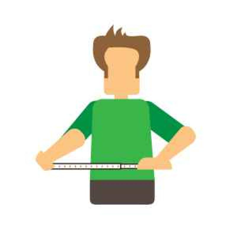 Neem een lintmeter en meet het smalste deel van je middel tussen de onderste rib en de bovenkant van het heupbeen. Meet dat terwijl je uitademt. Span je lintmeter niet te veel aan en zorg ervoor dat hij evenwijdig is met de grond.