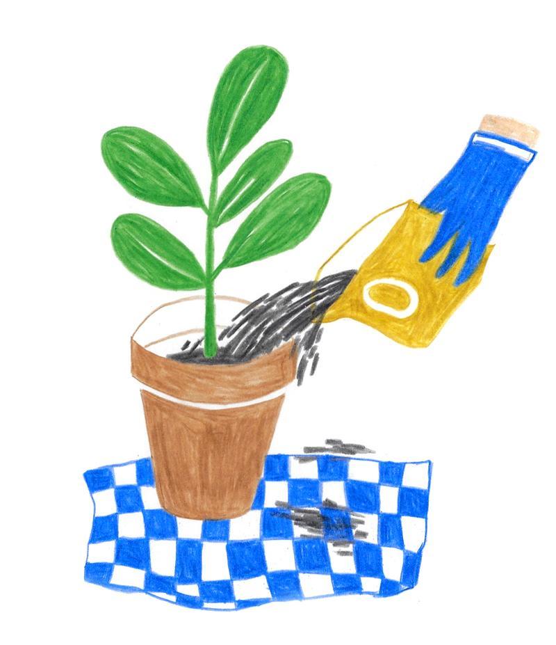 Heb je een volwassen plant in huis of een exemplaar dat zo groot is dat het je niet meer lukt om hem te verpotten, dan volstaat het om de bovenste laag aarde te vervangen. Schep zo'n vijf centimeter weg let goed op dat je de wortels niet beschadigt. Voeg nu een nieuwe dosis potgrond toe. Zo vermijd je dat de aarde volledig uitgeput raakt en dat je plant in ademnood komt.