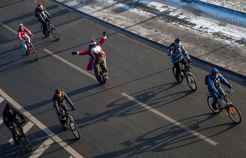 Ondanks waarschuwingen tegen een tocht bij -27 graden Celsius, heeft 'Let's Bike It' dit weekend toch plaatsgevonden in de Russische hoofdstad. Een vijfhonderdtal Moskovieten, sommigen verkleed als de kerstman, lieten zich niet tegenhouden door het koude.