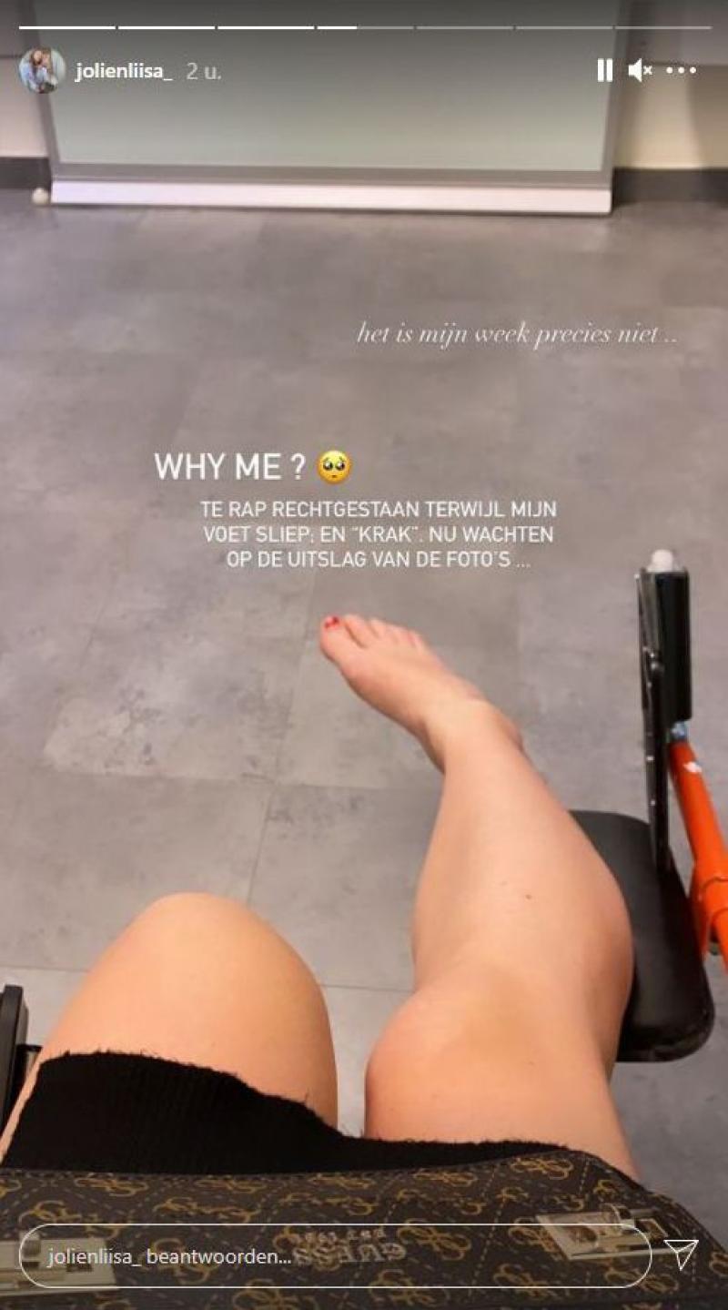 Jolien, die we kennen uit Temptation Island 2017', heeft een ongelukje gehad waardoor ze een barst in haar middenvoetsbeentje opliep.