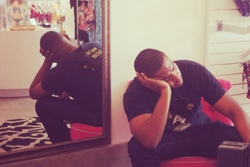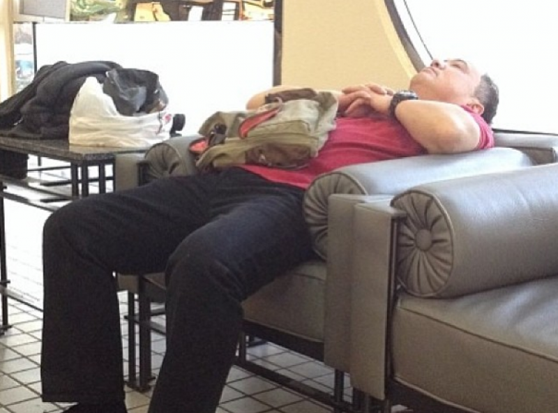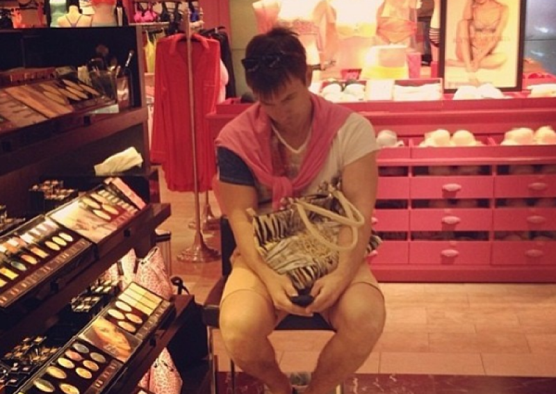 Het is een hit op Instagram. Foto's van mannen die mee moeten gaan met vrouwlief en dan in het shoppingcentrum -moe van al het winkelen- in slaap vallen.