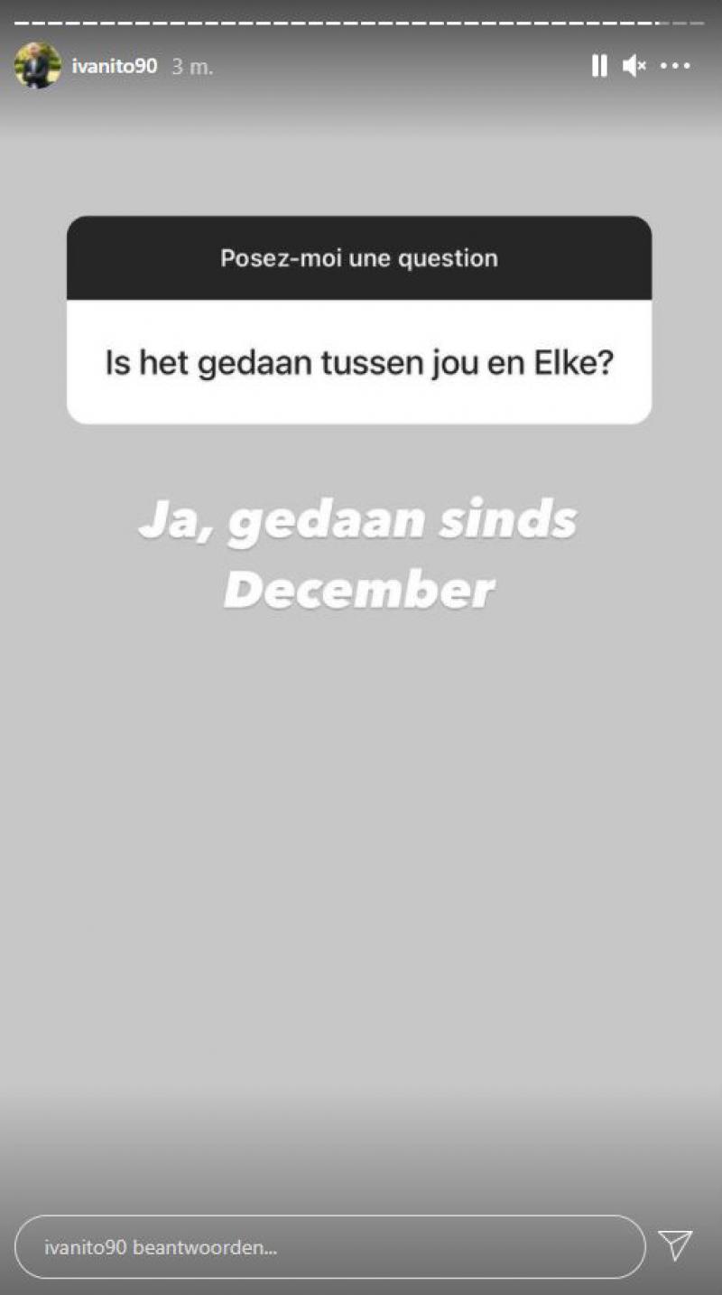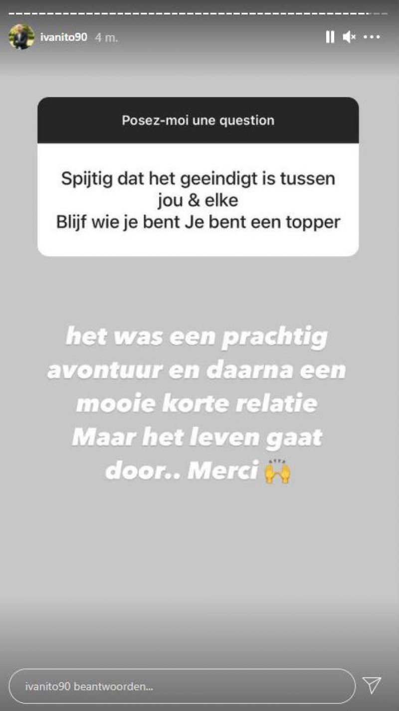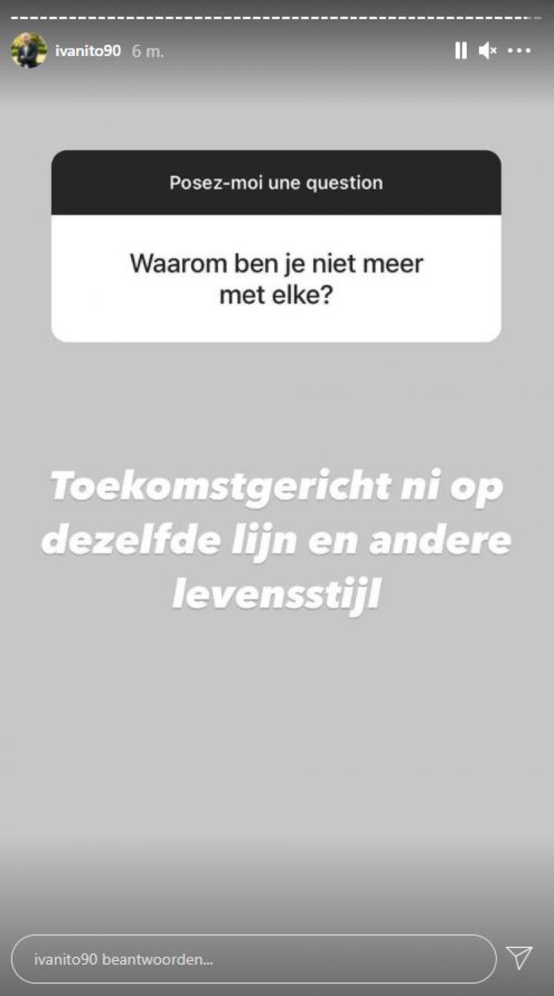 Elke gaf als voornaamste reden van hun relatiebreuk aan dat ze te verschillend zijn. Ivan bevestigt dat nu. Toekomstgericht zitten we niet op dezelfde lijn en we hebben een andere levensstijl, schrijft hij op Instagram tijdens een vragenuurtje.