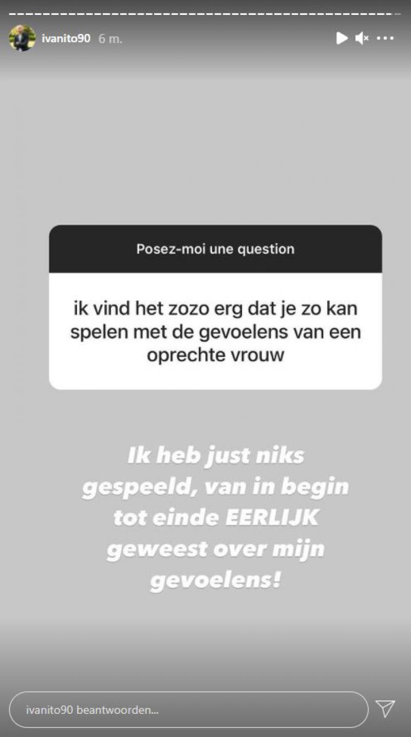 Sommige mensen hadden de indruk dat Ivan met de gevoelens van Elke speelde tijdens de opnames. Dat ontkent hij met klem. Ik heb just (sic) niks gespeeld. Ik ben van in het begin tot het einde eerlijk geweest over mijn gevoelens, verduidelijkt hij.