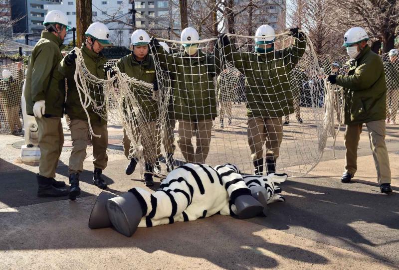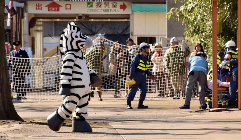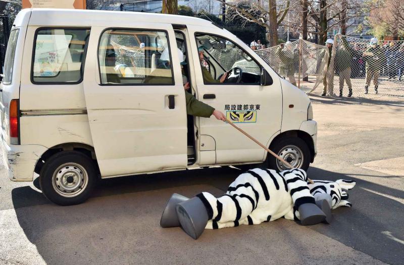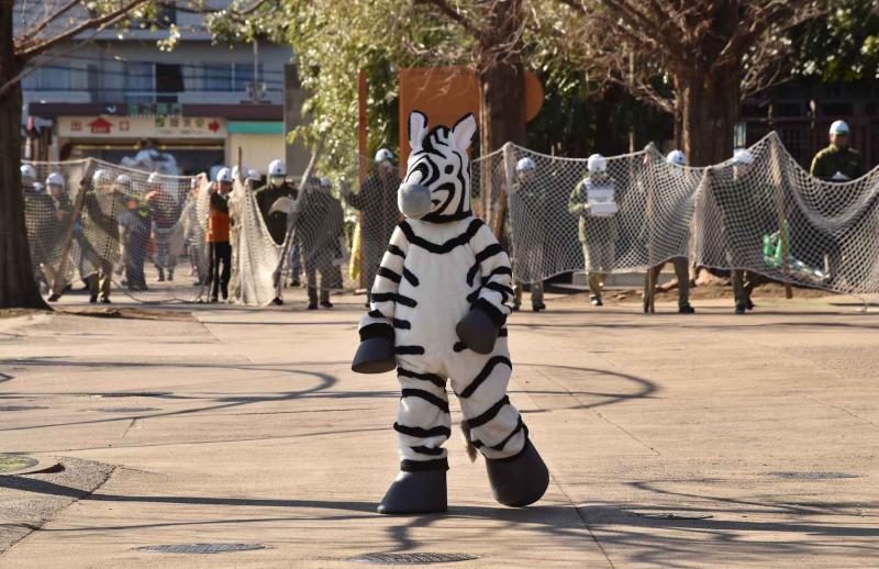 Alle hens aan dek voor de medewerkers van de dierentuin Ueno in de Japanse hoofdstad Tokio. Er werd een grootscheepse oefening op poten gezet, voor als een van de zebra's mocht ontsnappen. Eén van de dierenverzorgers mocht zich in een pluchen kostuum hijsen, waardoor de noodoefening onbedoeld op de lachspieren werkte.