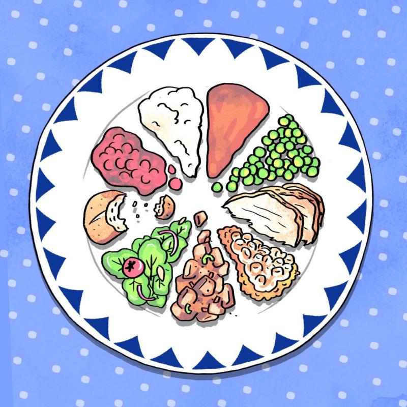 ?1. Je geeft elk 'soort' eten evenveel plaats op je bord.?