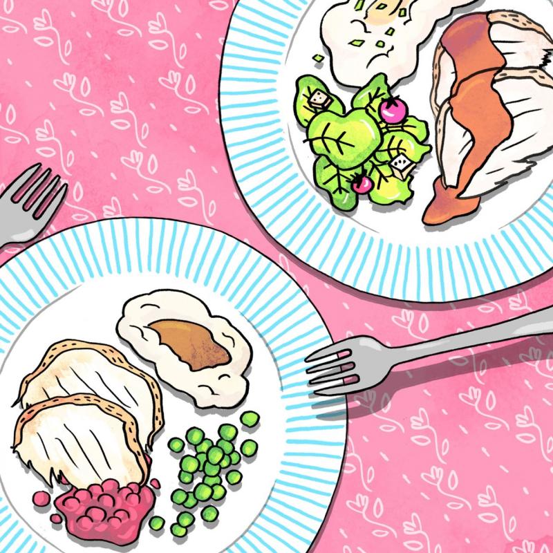 2. Je schept je eten slordig op je bord. Sauzen lopen in elkaar over, je rijst ligt half over je spinazie...