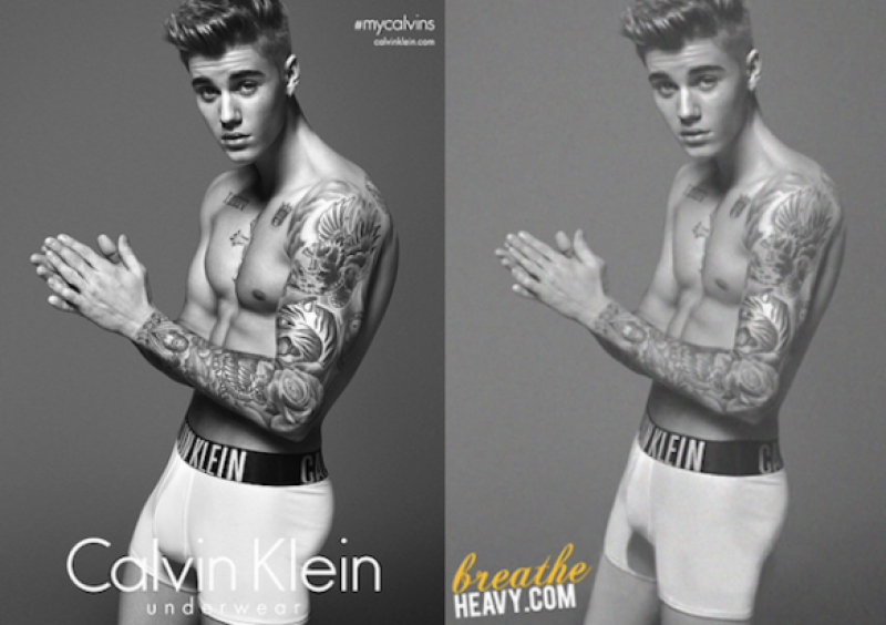De foto's van Justin Bieber werden namelijk door photoshop gehaald en het eindresultaat is een gevulde Justin en dat geldt ook voor zijn onderbroek. Er zijn verschillende foto's waaruit duidelijk blijkt dat iets niet klopt. Een Amerikaans roddelblad schreef dat Bieber zelf eiste dat hij wat meer kreeg.