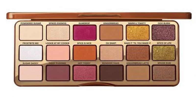 Dit make-up palet van Too Faced bevat 18 warme tinten met een glitter-finnish en de geur van kerstgebak.