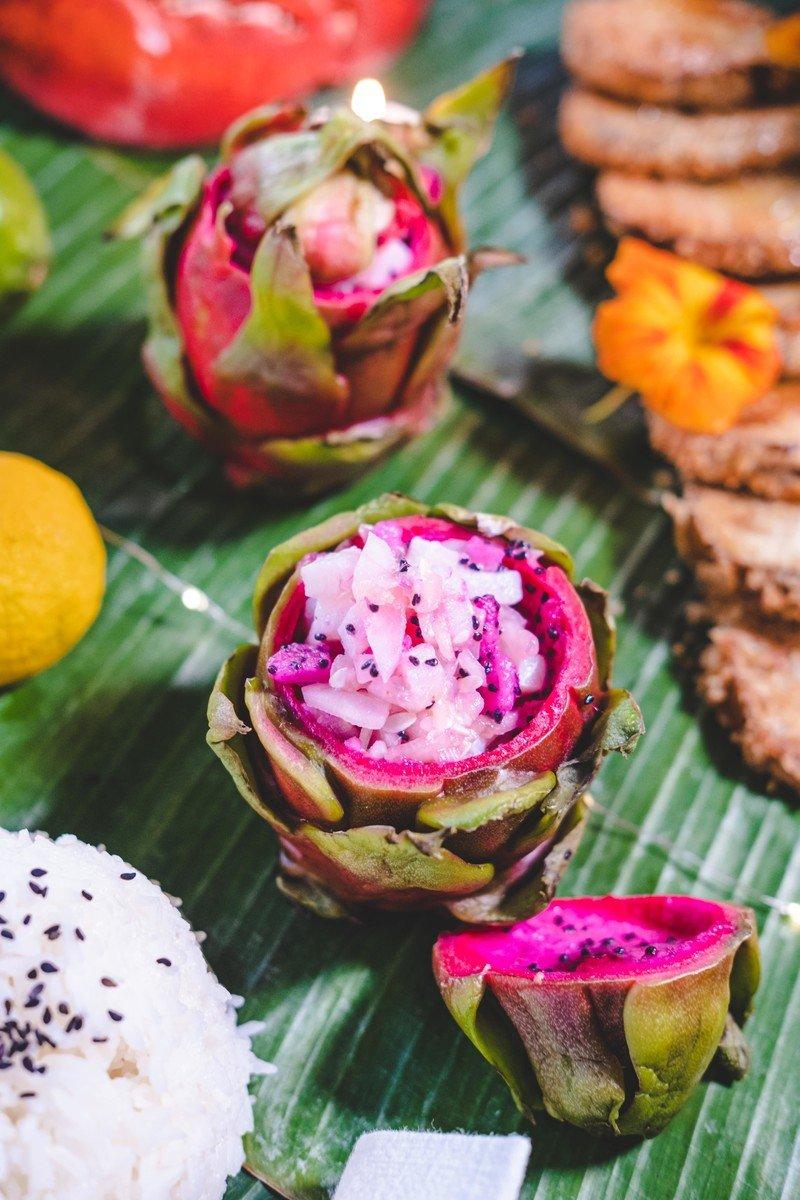 Je brengt de feestdagen dit jaar misschien niet door op een exotische bestemming, maar dankzij dit menu ga je toch op reis. Glen Ramaekers, chef van het Brusselse restaurant Humphrey chez PIAS, tovert je woonkamer om in een Filipijns eiland met zijn Kamayan buffet. Denk daarbij aan zeevruchten, gegrild vlees, groenten en rijst geserveerd op bananenbladeren. Kamayan is Tagalog voor «met de hand» en verwijst naar de manier waarop je de gerechten eet. Voer voor een nieuwe kersttraditie?