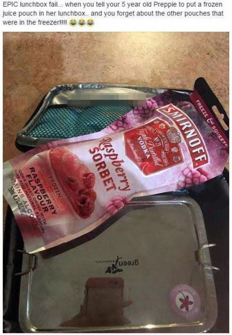 De rush die 's ochtends ontstaat bij het klaarmaken van de kinderen is voor velen een dagelijkse realiteit. Daarbij kan er soms wel eens iets foutlopen. Zo mocht een meisje van vijf jaar uit Queensland (Australië) zelf een fruitsap uit de diepvries halen. Zonder het te beseffen nam het kind een zakje wodka mee.