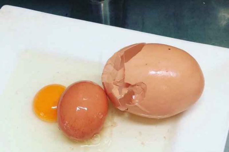 Op de boerderij Stockman's Eggs in Australië worden dagelijks 50.000 eieren gelegd, maar een ei van 180 gram had eigenaar Scott Stockmann nog nooit gezien. Toen hij het gigantisch ovaal openbrak, kon hij zijn ogen niet geloven. Er zat nog een ei in, een verrassing zoals bij een Kinder Surprise.