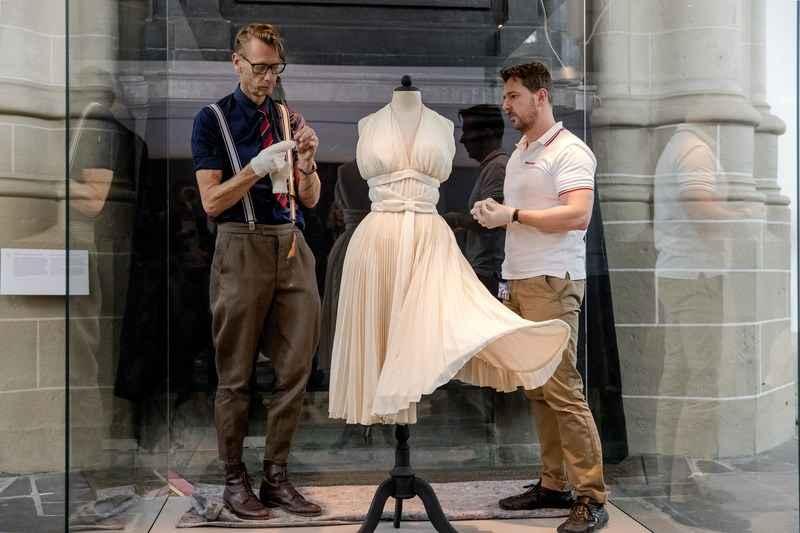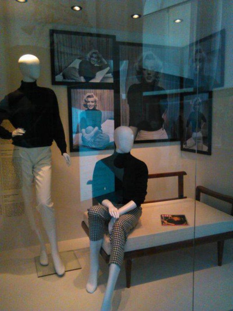 Je kan er jurken uit enkele van haar opmerkelijkste films bewonderen: van de lange rode satijnen kokerjurk uit How to Marry a Millionaire' (1953) tot de jurk van geborduurde tule uit The Prince and the Showgirl' (1957) en uiteraard een van de twee mythische witte plooi-jurken, die in The Seven Year Itch' (1955) omhoog geblazen wordt doordat ze op het ventilatierooster van de metro staat. Er zijn ook de kniebroeken die door een beroemde fotoshoot werden vereeuwigd en de zwarte rok met bloes die de beroemdheid graag in haar privéleven droeg.