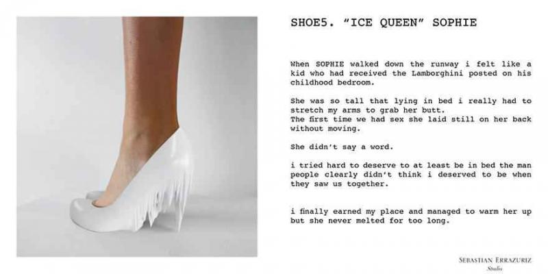 Kunstenaar Sebastan Errazuriz bedacht wel een heel bijzondere manier om zijn ex-lieven te verwerken. Voor elk ex-lief ontwierp hij namelijk een adembenemende schoen die het verhaal van hun relatie vertelt. De schoenen worden gebundeld in de reeks "12 Shoes For 12 Lovers".
