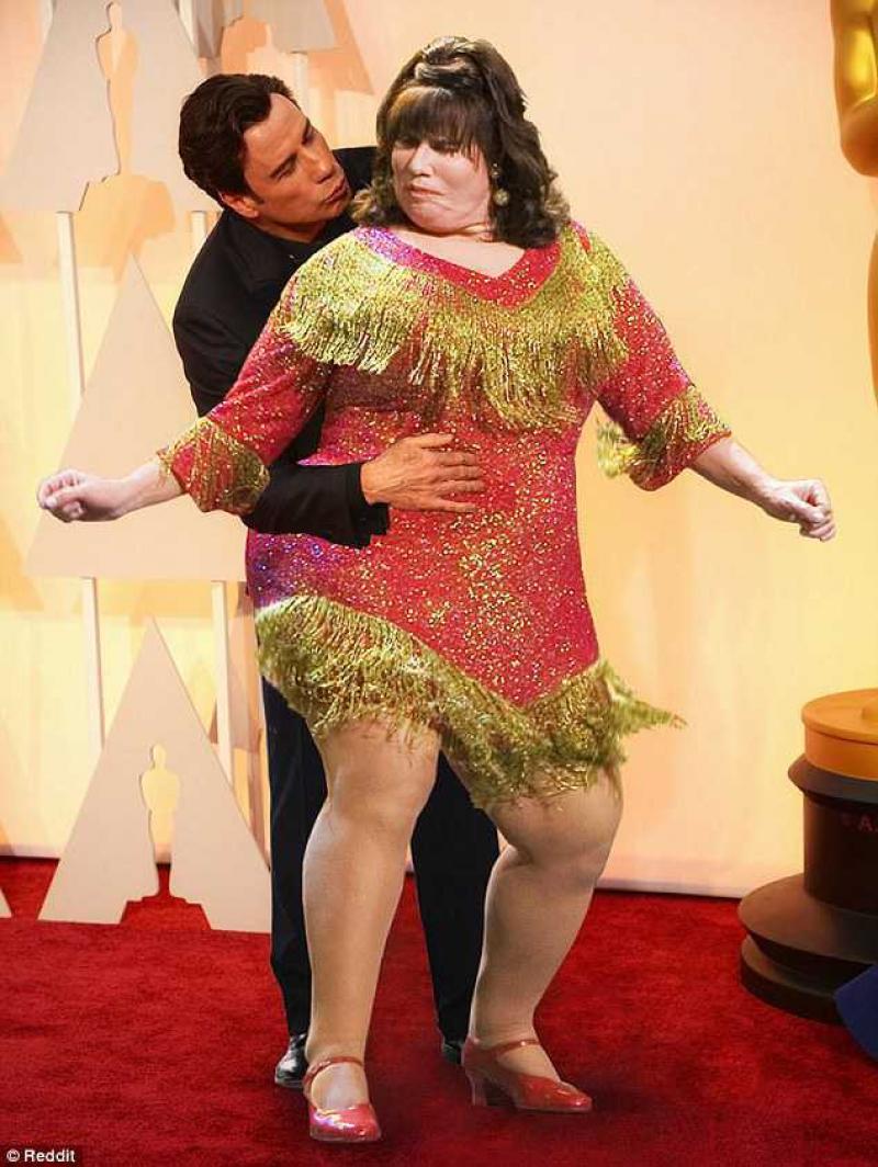 Neil Patrick Harris was dan wel de gastheer zondagavond tijdens de Academy Awards maar de show was nog niet eens begonnen of John Travolta had ze alweer gestolen. De acteur die vorig jaar al voor opschudding zorgde door de zangeres van Frozen, Idina Menzel, aan te kondigen als Adele Dazeem, heeft opnieuw alle social media ingepakt door Scarlett Johansson te kussen op de rode loper. Travolta benaderde de actrice zonder dat ze het wist en kuste haar op de wang terwijl zijn hand om haar middel gleed.