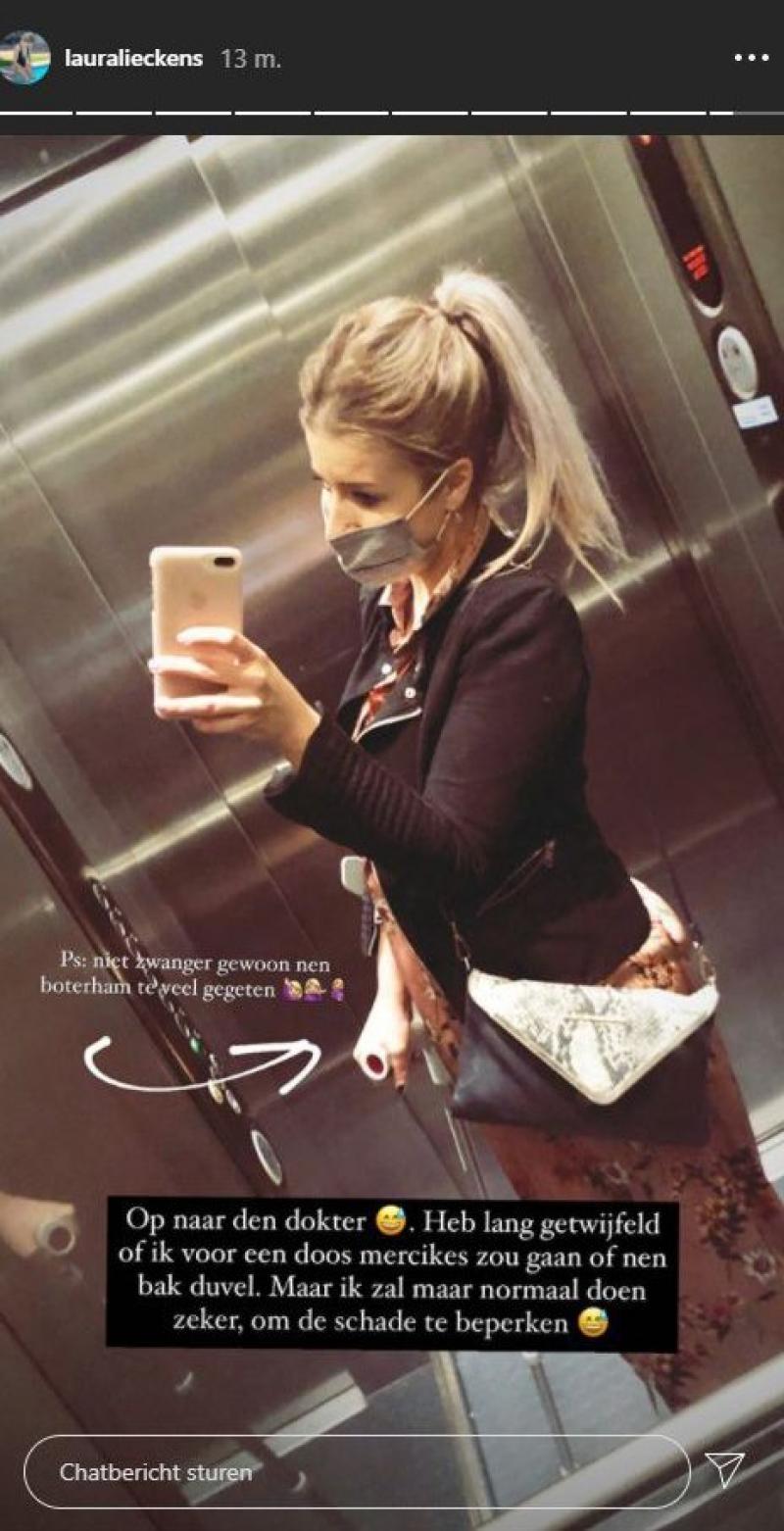 Vrijdag ging ze naar de dokter en deelde ze een foto waarop ze een buikje lijkt te hebben. Ik ben niet zwanger. Ik heb gewoon een boterham te veel gegeten, knipoogde ze.