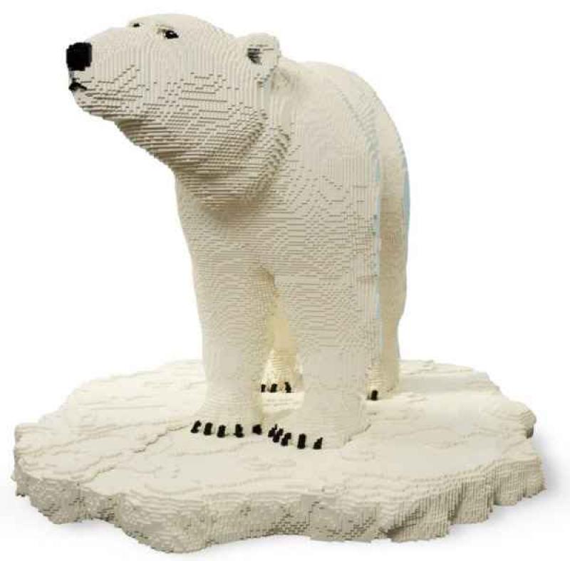 95000 blokjes waren er nodig om deze ijsbeer in elkaar te zetten, de klus heeft 1100 uur geduurd in totaal.