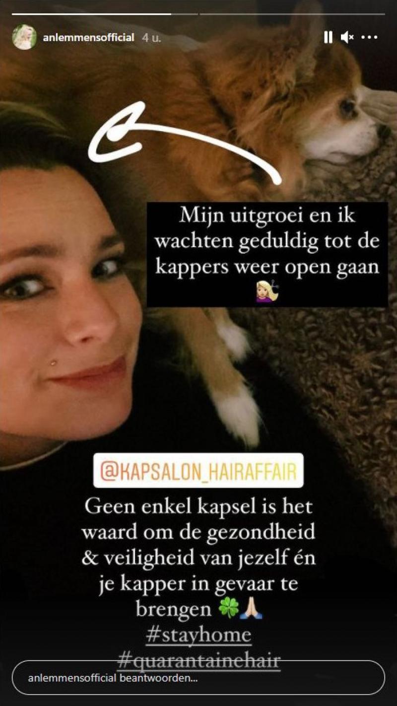 Moet je coupe dringend onder handen genomen worden? Wel, je bent niet alleen. Boer zkt Vrouw'-presentatrice kijkt net als zovelen reikhalzend uit naar het moment waarop de kappers opnieuw open mogen, maar alleen als dat veilig kan. Mijn uitgroei en ik wachten geduldig tot de kappers weer open gaan. Geen enkel kapsel is het waard om de gezondheid en veiligheid van jezelf én je kapper in gevaar te brengen, schrijft ze op Instagram.