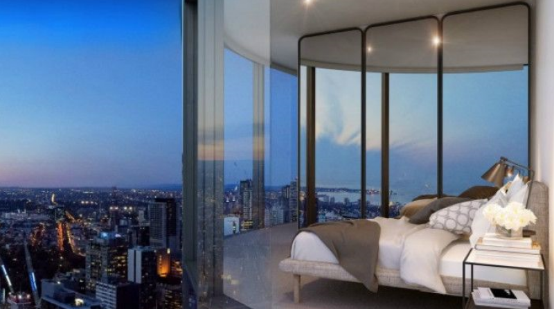 De wolkenkrabber van 68 verdiepingen zal onderdak bieden aan 660 appartementen, een hotel met 160 kamers en commerciële ruimtes. De transparante slaapkamers kunnen uitpakken met een indrukwekkend zicht over Melbourne.