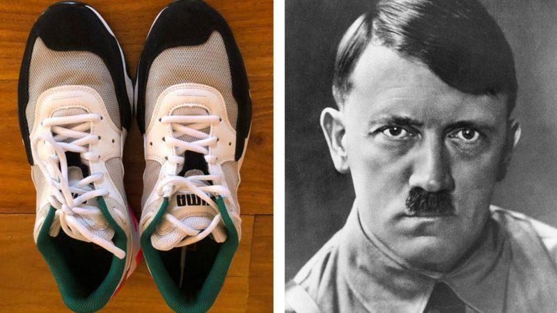 Als je de schoen van de bovenkant ziet kan je er met een beetje verbeeldingsvermogen prima Hitler in herkennen. De voorkant van de sneaker lijkt op het haar terwijl er over de veters een snorretje herkent kan worden. Het kan natuurlijk ook gewoon Charlie Chaplin zijn, of Balthazar Boma na een knipbeurt.