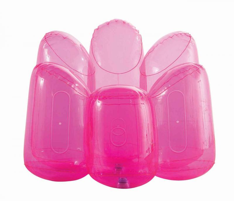 Deze plastic Airflower' bloem van Fabrice Berrux voor Roche Bobois bestond al in transparant en oranje. Nu zit ze ook in een flashy roze jasje.